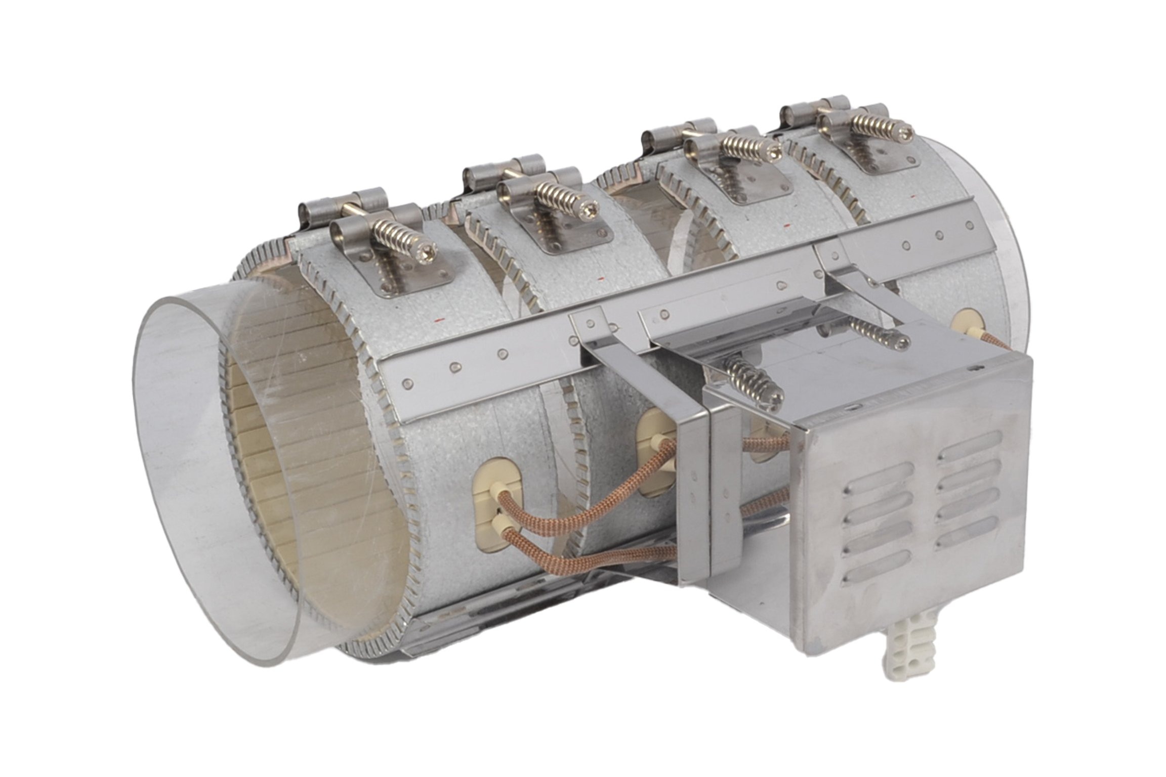 Hava soğutmalı seramik rezistanslar seramik yalıtımlı rezistanslar gibi 80/20 1100ºC krom-nikel tel, statik kemer taşı, paslanmaz dış kılıf kullanılır. Bunlara ilave olarak, havayı eşit bir şekilde dağıtma reflektörü, ithal debisi yüksek monofaze fan ve hava çıkış kanalından oluşmaktadır.